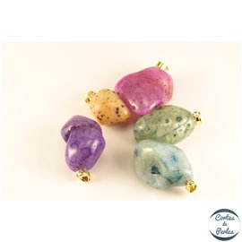 Pendentifs d'agate du Brésil en forme de pépites teintées, avec agrafes en laiton doré - Couleurs variées (vert, rose, bleu, violet etc.) - Longueur 25 à 40 mm - Largeur 20 à 35 mm - Epaisseur 10 à 25 mm - Trou 6x5 mm - Prix pour 5 pièces - Couleurs aléatoires