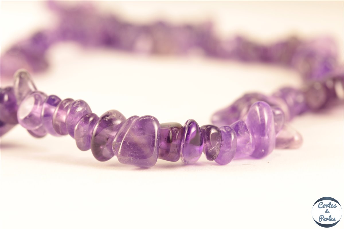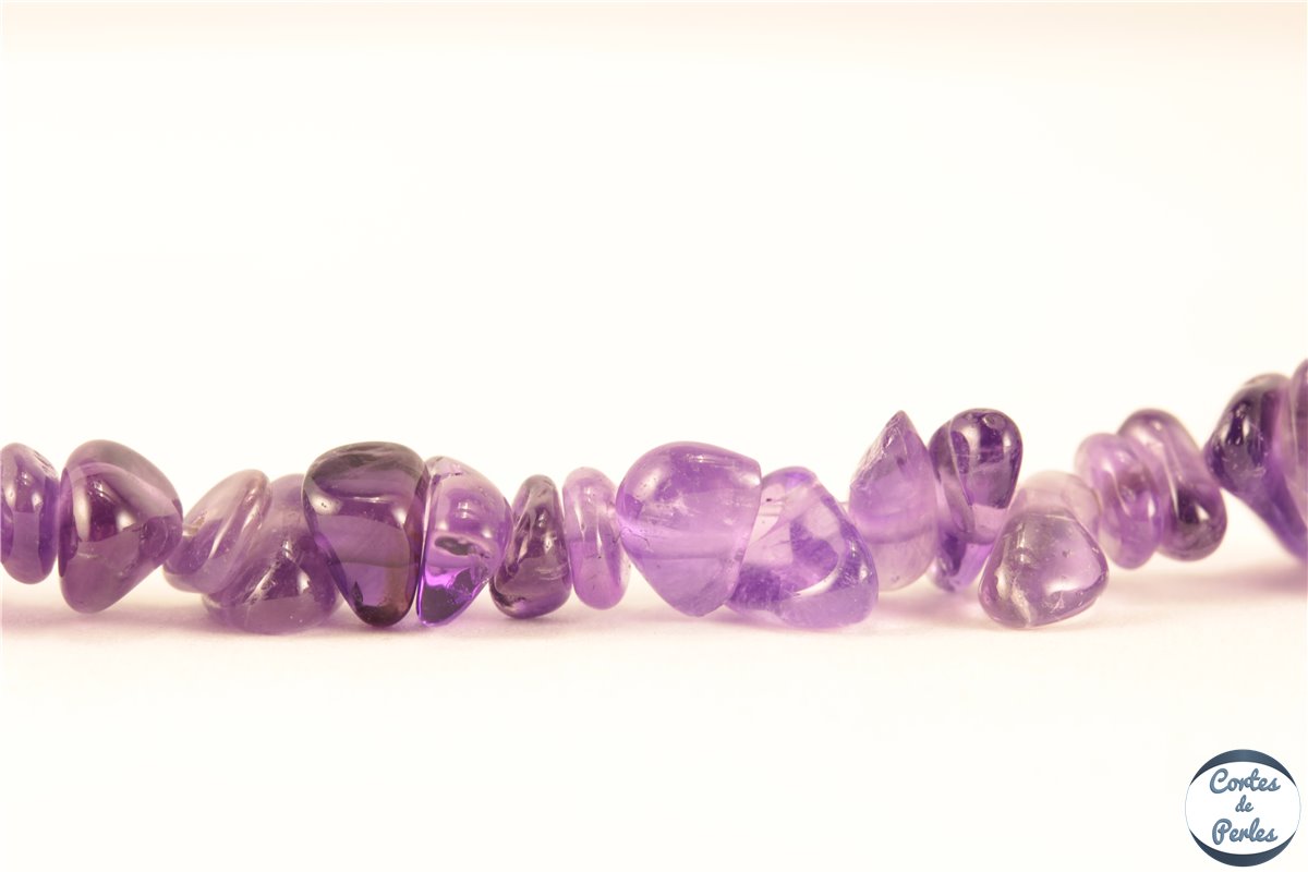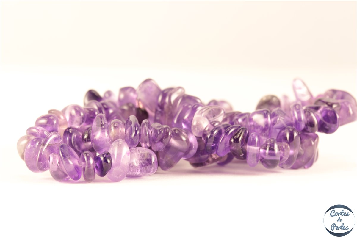 Belles perles lisses d'améthyste naturelle en forme de nuggets - Longueur entre 4 et 14 mm - Largeur entre 4 et 12 mm - Diamètre du trou 1 mm - Bonne qualité - Forme originale - Prix pour un rang d'environ 80 perles