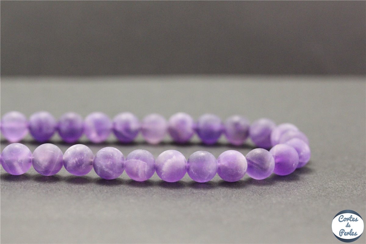 Belles perles dépolies et rondes en améthyste naturelle - Grade A - Diamètre 8mm environ - Diamètre du trou 1mm - Bonne qualité - Prix pour un rang de 38cm environ