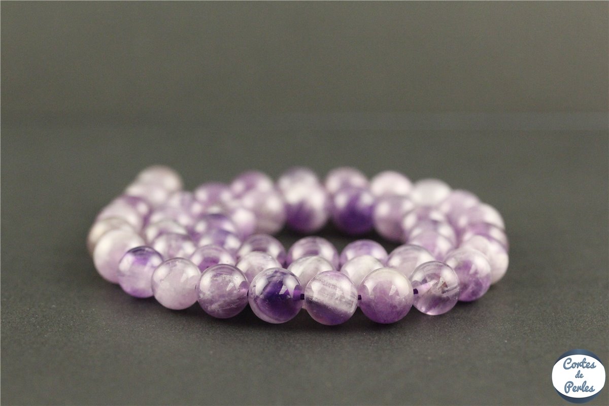 Perles lisses et rondes en améthyste à chevron naturelle du Brésil - Grade B+ - Diamètre 8mm environ - Diamètre du trou 1mm - Recommandées pour une utilisation en lithothérapie - Prix pour un rang de 38cm environ