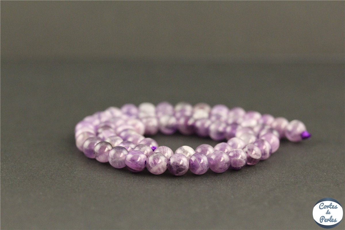 Petites perles lisses et rondes en améthyste à chevron naturelle du Brésil - Grade B+ - Diamètre 6mm environ - Diamètre du trou 1mm - Idéales pour une utilisation en lithothérapie - Prix pour un rang de 38cm environ