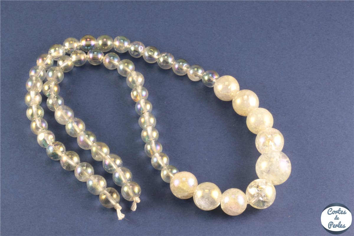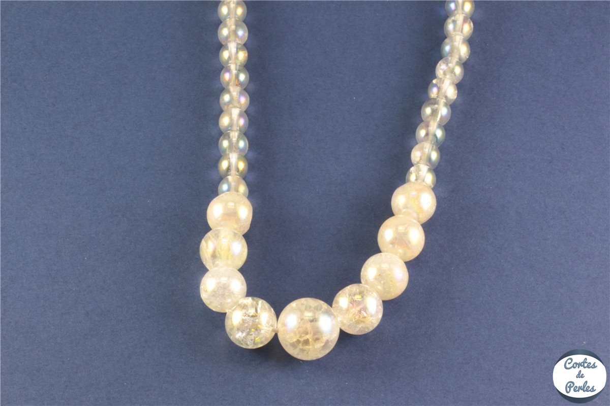 Belles perles rondes en cristal crack - Reflets irisés et nacrés - Très bonne qualité, Grade AB - Prix discount imbattable au vue de la qualité - Ø entre 7,5 mm et 14 mm - Trou 1 mm - Prix pour 1 rang