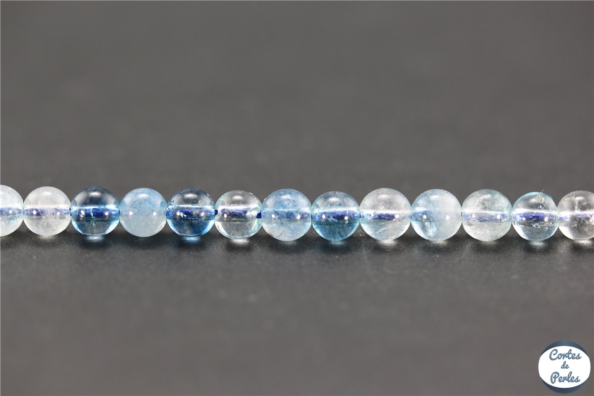 Très belles petites perles lisses rondes de cristal crack teintées en bleu ciel - Diamètre 6 mm - Diamètre du trou 1 mm - Top qualité - Prix pour un rang d'environ 62 perles