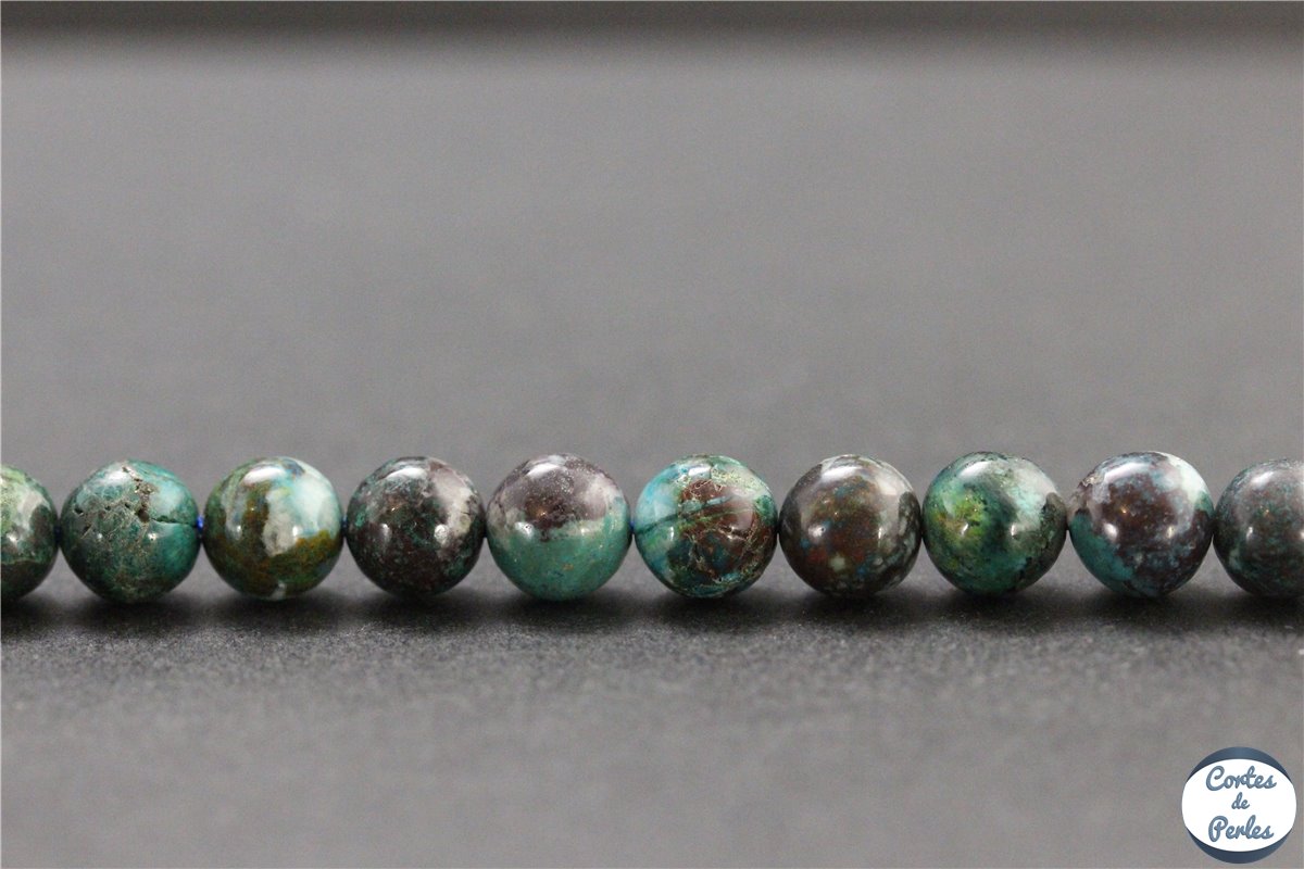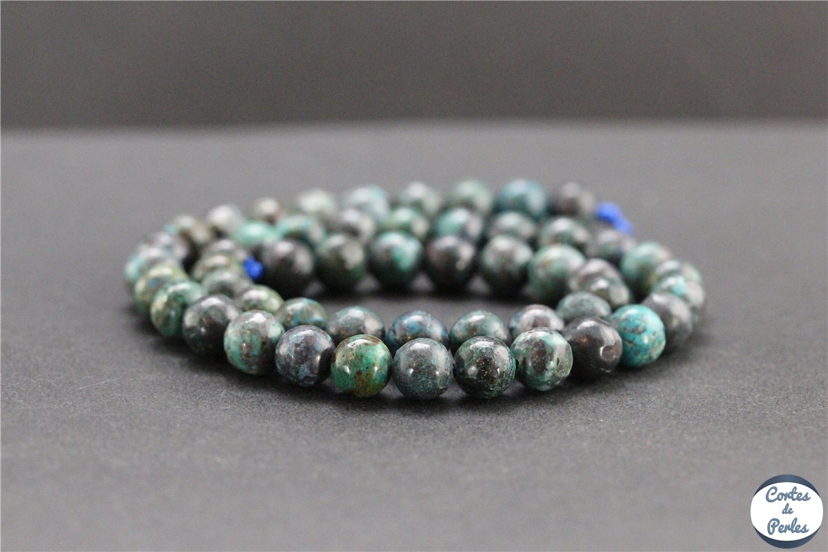 Splendides perles lisses et rondes en chrysocolle naturelle du Pérou - Grade A - Diamètre 8mm environ - Diamètre du trou 1mm - Qualité premium exceptionnelle - Recommandées pour une utilisation en lithothérapie - Certaines perles du rang peuvent contenir de petites inclusions d'azurite et de malachite - Prix pour un rang