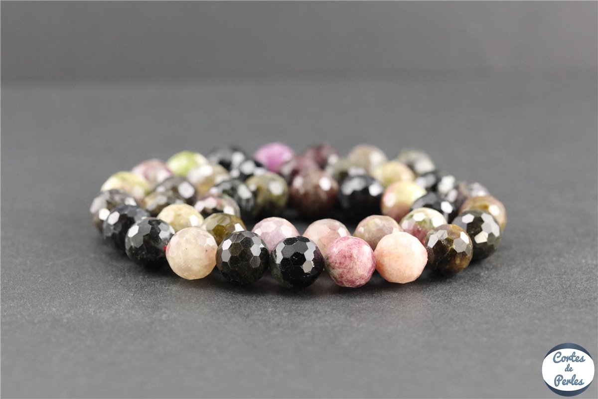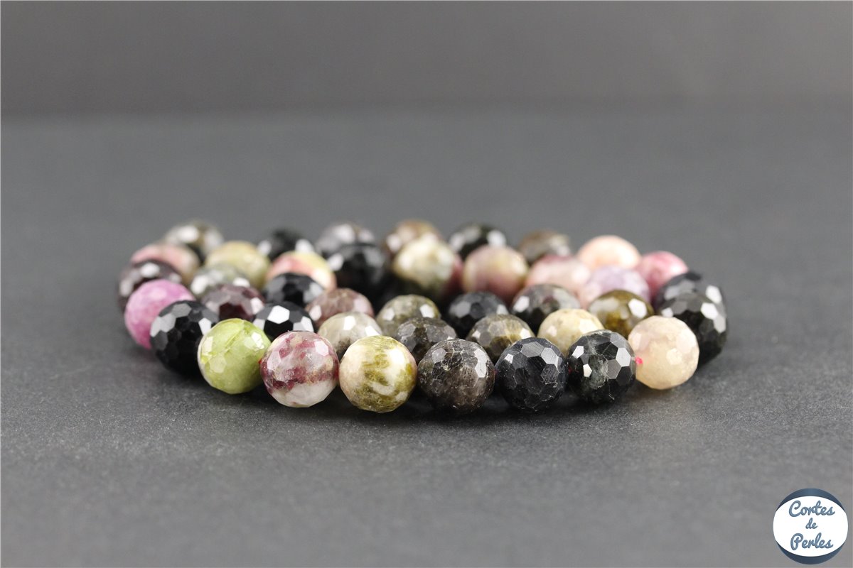 La tourmaline est une pierre de la famille des silicates que l'on trouve à l'état naturel sous forme de cristaux multicolores, avec de très belles nuances allant du noir au rose en passant par le vert. Les principaux gisements actuellement en exploitation se trouvent en Afrique et en Amérique du Sud. Cette pierre est depuis longtemps très prisées en bijouterie fantaisie, et ses nombreuses propriétés en font un must de la lithothérapie. En effet, la tourmaline, de part ses propriétés électriques exceptionnelles, est connue pour être la pierre de protection par excellence. Elle est particulièrement recommandée aux personnes stressées qui ont des problèmes de sommeil, et se combine assez bien avec d'autres pierres, comme le quartz ou la labradorite. Nous vous proposons dans cette section nos perles en tourmaline naturelle de Madagascar, parfaites pour agrémenter vos créations de bijoux fantaisie ou vos bijoux pour lithothérapie.