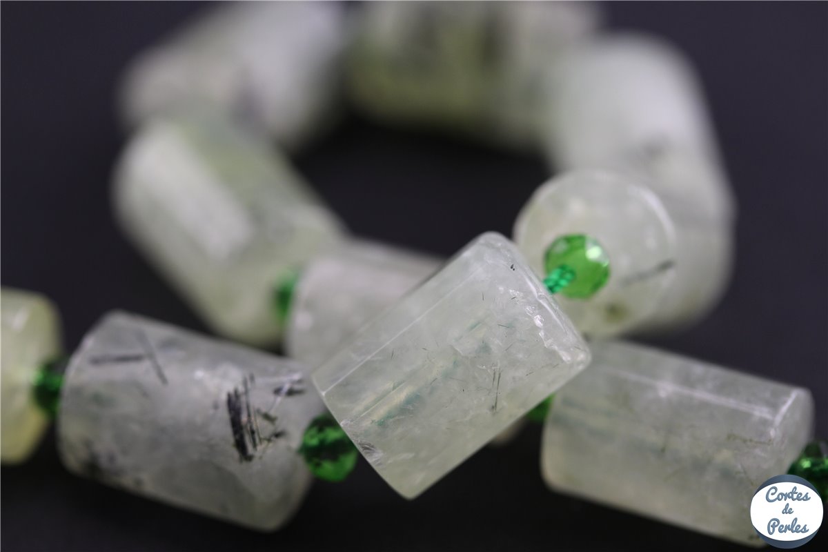 Splendides perles lisses de préhnite naturelle en forme de tubes - Longueur 14 mm - Largeur 10 mm - Diamètre du trou 1 mm - Qualité premium parmi nos plus belles pièces - Forme originale - Prix pour un rang d'environ 27 perles