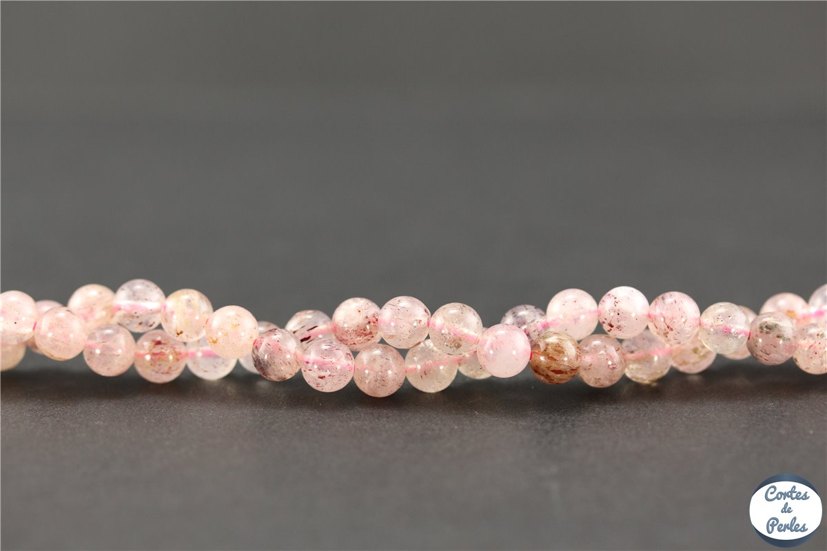 Très belles petites perles lisses et rondes de quartz fraise naturel - Diamètre entre 5,5 et 6 mm environ - Diamètre du trou 1 mm - Top qualité - Prix pour un rang